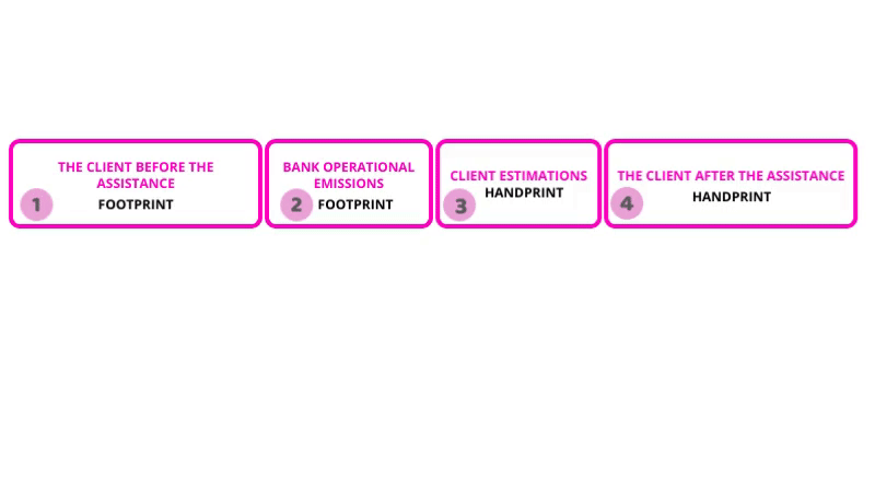 ● The net impact of the financial product, by measuring the levels of emissions in “before v. after” moments.